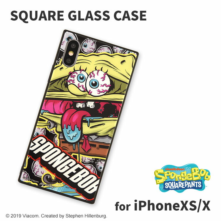 スポンジボブ iPhone XS iPhoneX ガラスケース スクエア 四角 Sponge Bob おしゃれ スマホ ケース スマホケース カバー かわいい 可愛い iPhoneXS キャラクター アイフォン xs ジャケット ケース アイホン 携帯ケース