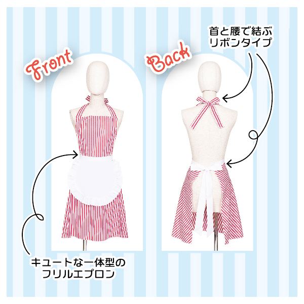 キッチンだけでなく、お料理教室、ギフト、ホームパーティーにも!アメリカンダイナーやウェイトレス風にもコーディネート出来るので学園祭、カフェイベントでの使用にもおすすめです。