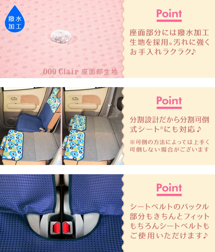 品名 / 型番 Ciel Dreamy シートエプロン 軽自動車汎用後部座席用 クレール柄 / CDSR-009 適合車種 軽自動車汎用 ※製品仕様・サイズをよくご確認ください 素材 本体:綿・ポリエステル セット構成 ・シートエプロン(後部座席用1枚) ・ヘッドレストカバー(Sサイズ2枚・Lサイズ2枚 / 計4枚) ・イラスト入り専用取説 備考 ◆ 生地の性質上、汗や直射日光によって変色する恐れがあります ◆ 製品により柄の出方が異なりますのでご了承ください ◆ 運転の妨げになるようなご使用はお止めください ◆ 繊維製品の性質上、製品毎に若干サイズが異なることがあります ◆ ヘッドレスト 及び シートの形状によっては取り付け出来ない場合があります ◆ 本製品はリヤ用(後席用)です、フロント用(前席用)は別売りとなっております ◆ 花柄、チェック柄やアジアン調、北欧調などおしゃれでかわいいデザインを豊富にご用意Ciel Dreamy<シエルドリミー>シートエプロン後部座席用 クレール柄 / CDSR-009